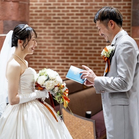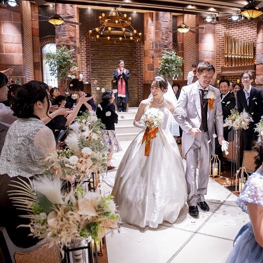 式場見学でレンガ造りの温かみのあるチャペルに魅力を感じたこととスタッフさんの対応の丁寧さがとても好印象で、ここの式場で結婚式を挙げたい!と見学当日に思いました。また、食べることが大好きな私たちだったので、お料理も美味しいこちらの会場に決めました。