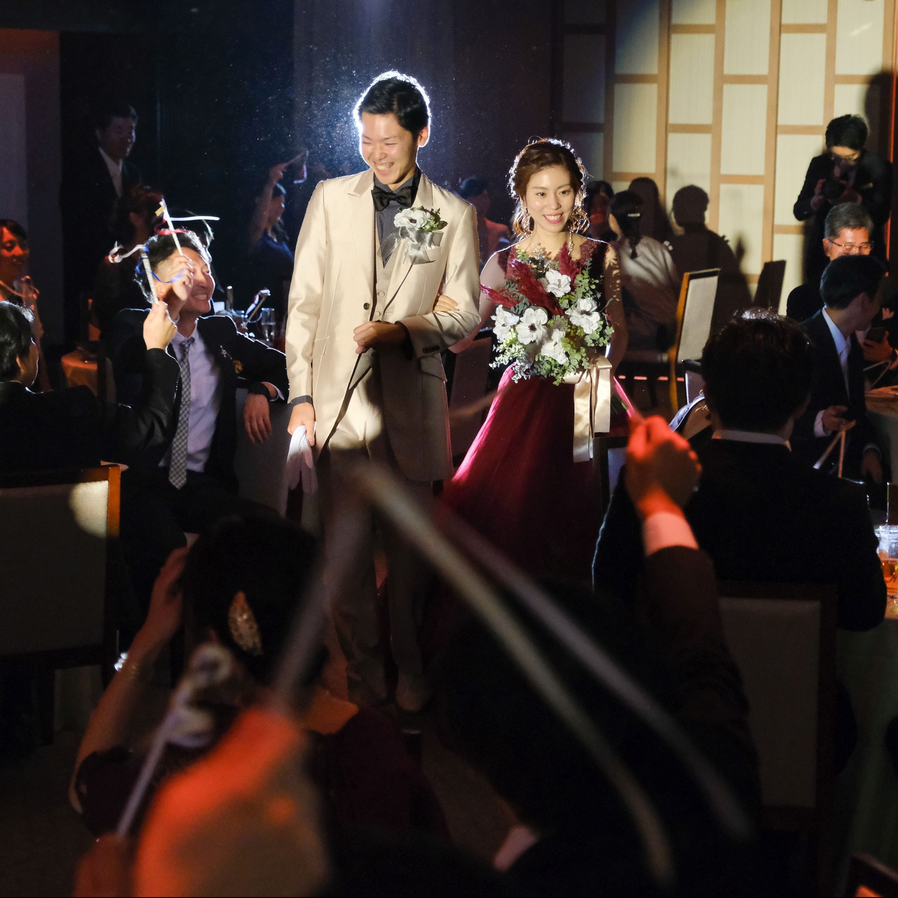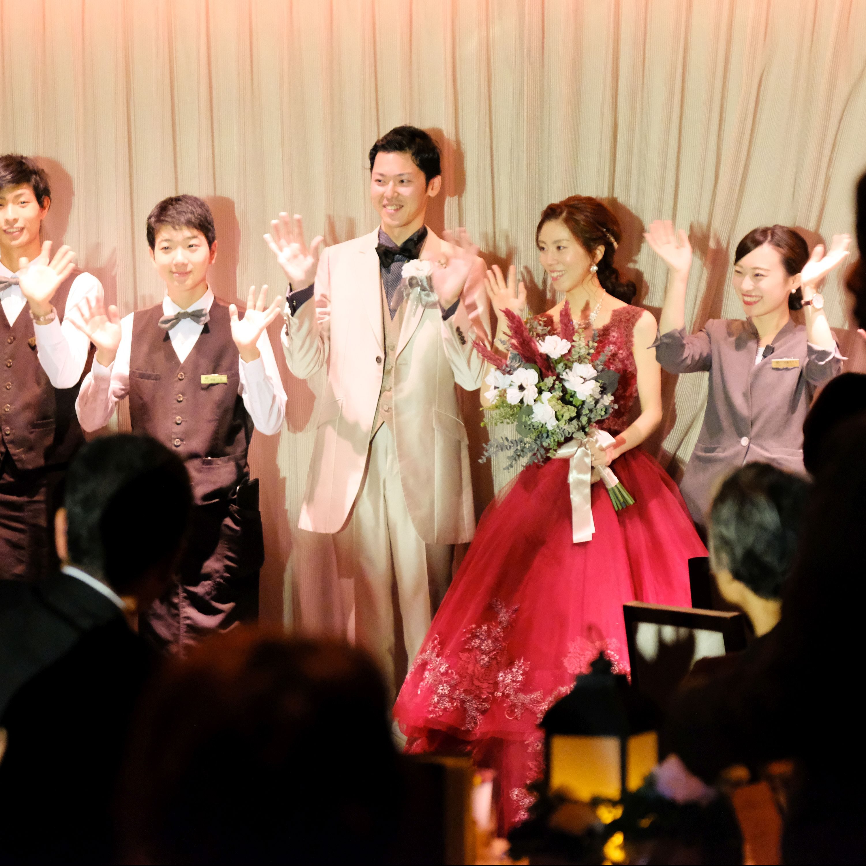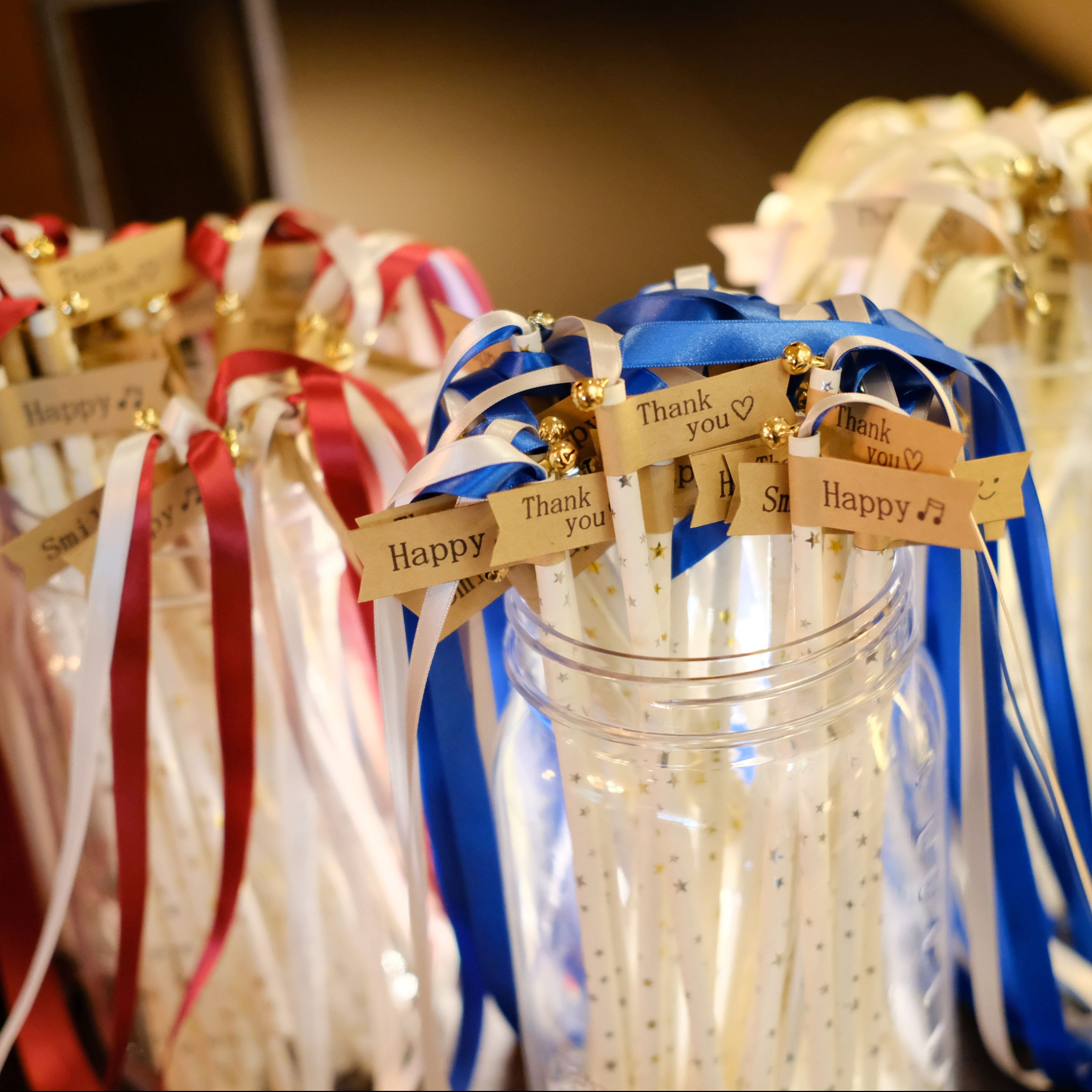 リボンワンズを作ってお色直しの再入場の時にゲストに振ってもらったところ。