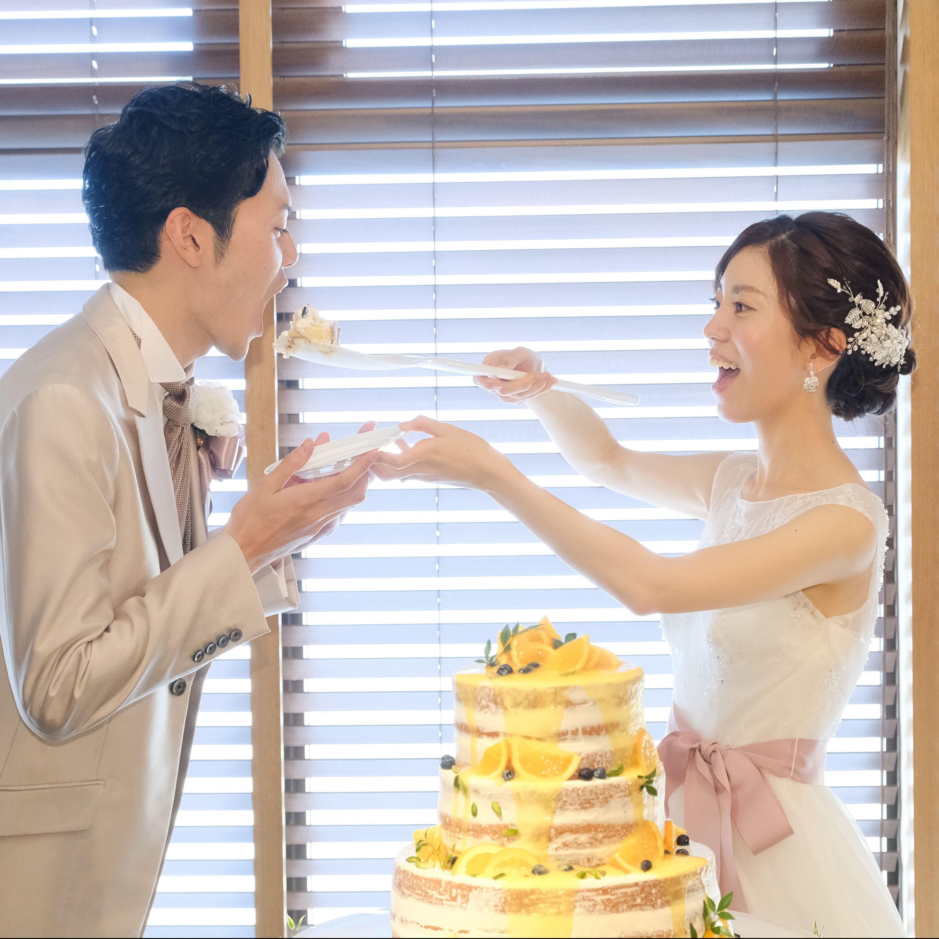 ケーキ入刀ではなく、オレンジ色のケーキドリップとしたこと。