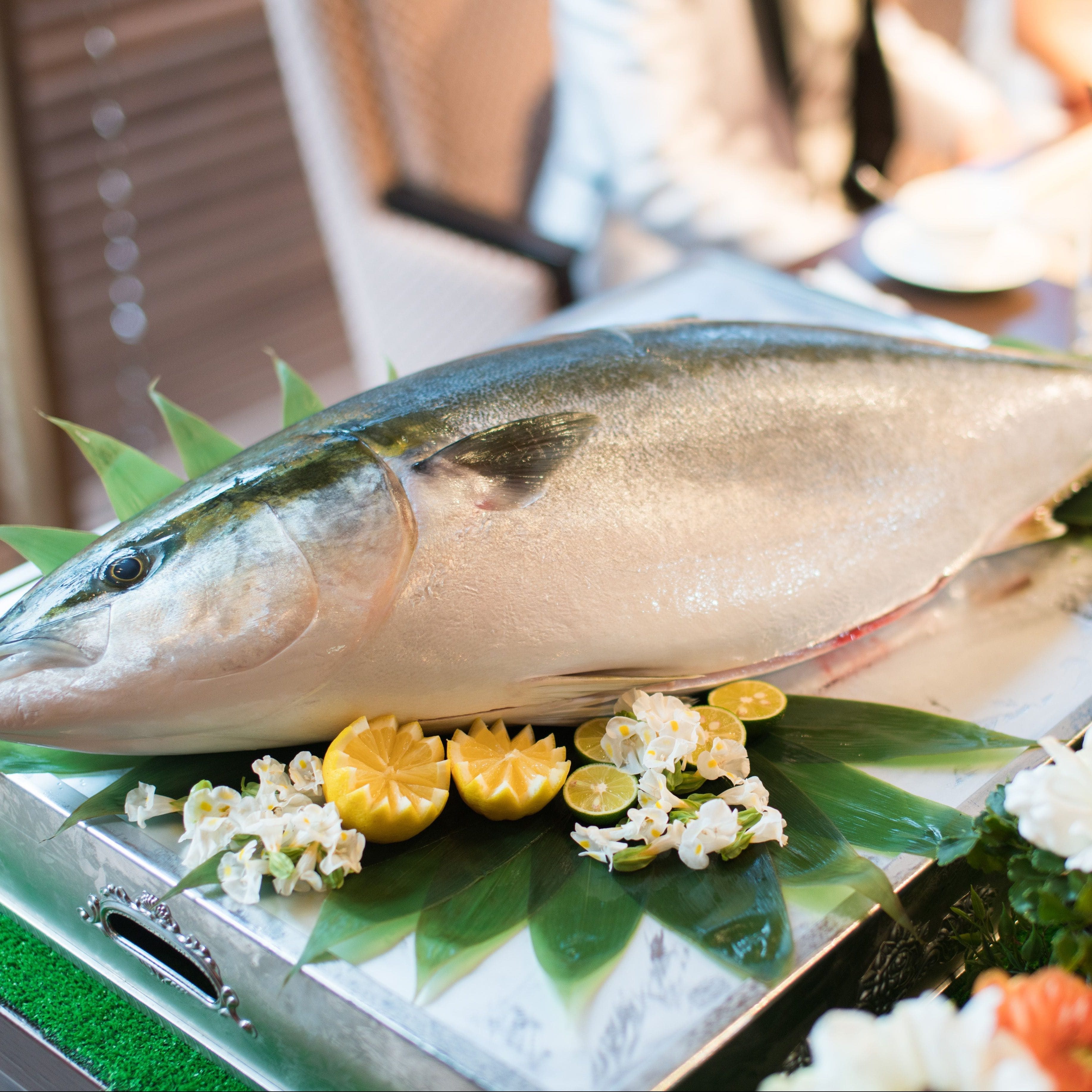 新郎の釣り愛!また、珍しいことがしたかったのでブリ入刀は外せませんでした。