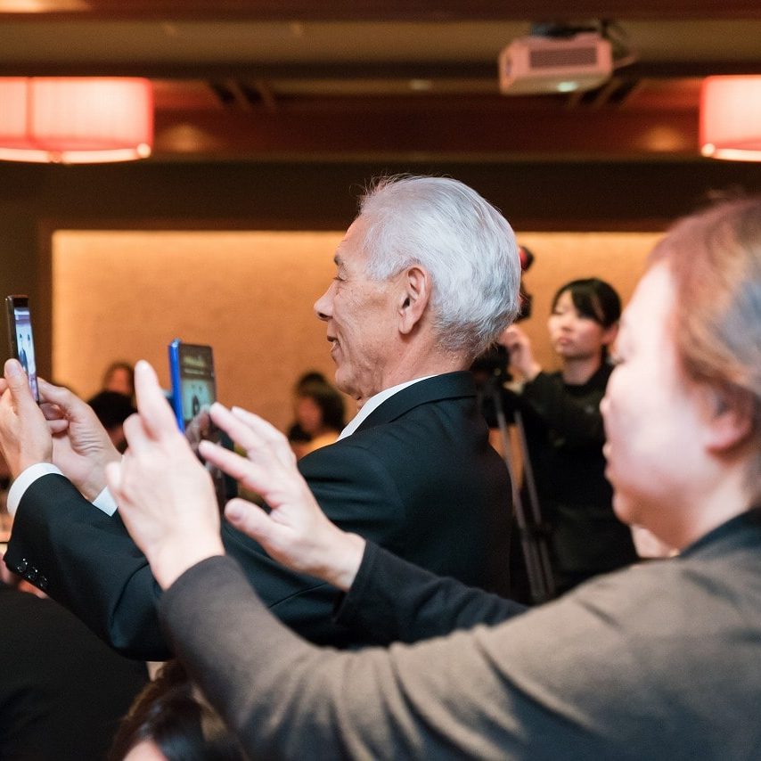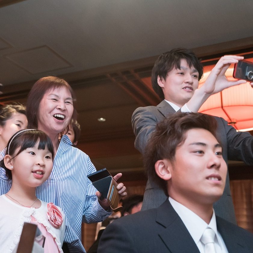 親族記念撮影で対面した時も、拍手がすぐ手拍子になり、一同にやにや…(笑)