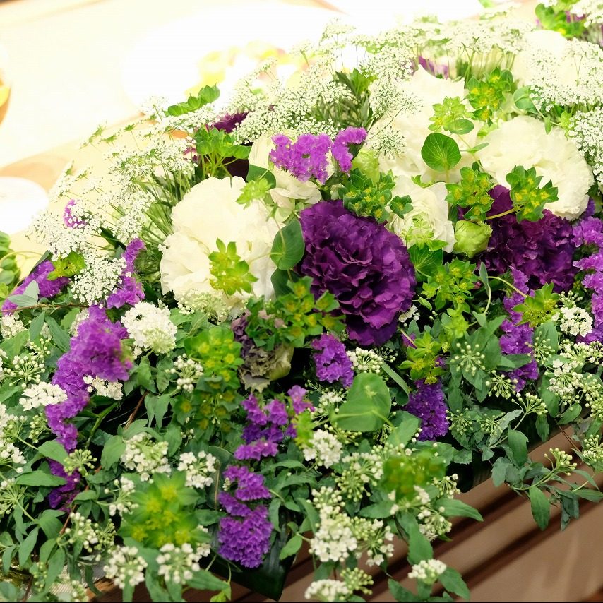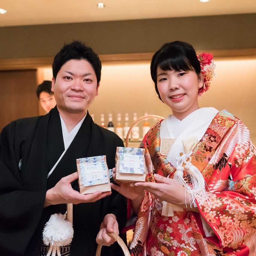 テーブルラウンドの際も、派手な演出よりは少しでもゲストのみなさんと話したりしたいなと思っていたところ、プランナーさんにフラワーサーブを提案していただき、ひとりひとりにかわいいかすみ草のミニブーケを渡せたのは自分たちらしく、楽しい時間になったと思います。