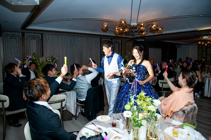 そして披露宴再入場ではペンライトを使ってより一層盛り上がった会場がおふたりのことをお迎えしてくれます。