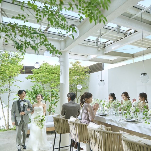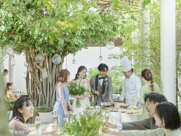 バンケットに隣接したテラスは、心地よい風が吹き抜ける緑豊かなとっておきの演出スポット。テラスからのサプライズ入場をはじめ、デザートビュッフェ、フォトパーティーなどお愉しみいただけます。参列された方々にとっても一生の思い出となるような、おふたりのオリジナリティあふれる演出をご提案いたします。