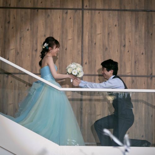 最後は新郎様が新婦様へブーケをお渡しし、プロポーズのような態勢に♡