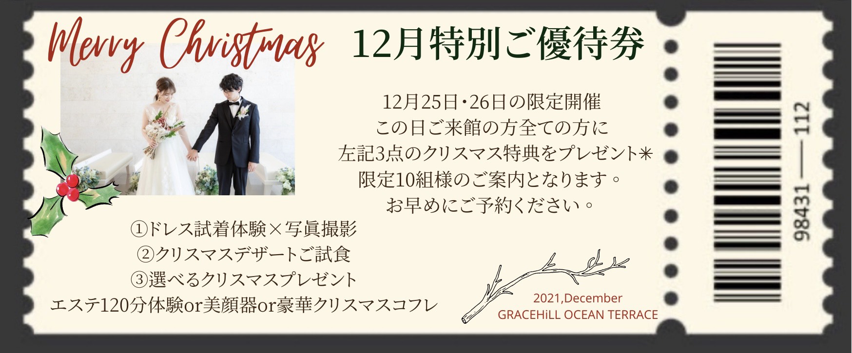 12月25日もしくは26日にご来館するだけで①~③のプレゼントがもらえます!!