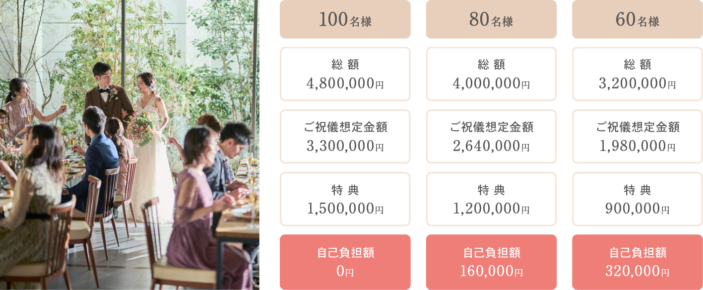 結婚式のご招待人数によってご祝儀だけで憧れのご結婚式を叶える事も可能。