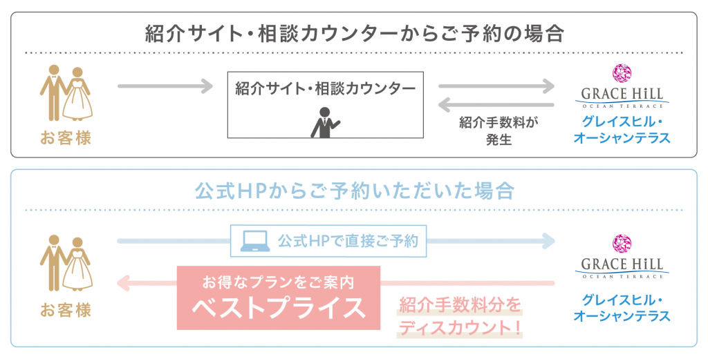 インターネットサイトからのご予約に比べて、当公式ホームページでご予約いただくと、