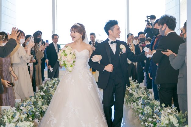 大切なゲストひとりひとりの顔を見ながら挙式が結びます。