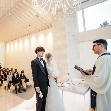 神と参列者の前で愛を誓う式で、進行は牧師が執り行うスタイルのことです。