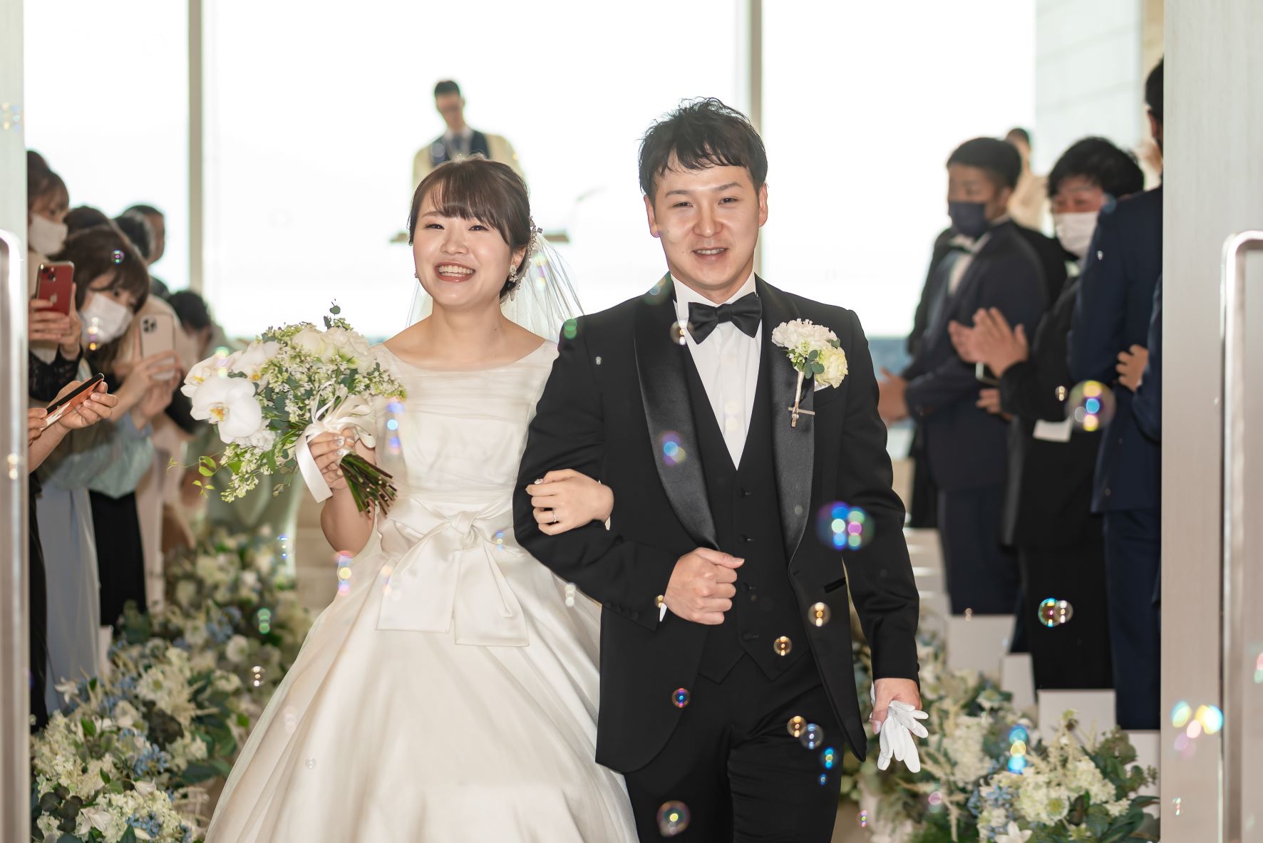 大切なゲストの方々に祝福され退場される瞬間。