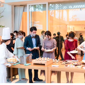 ゲストはスイーツを自由に選べてテーブル以外のゲスト同士でも会話が弾む♪