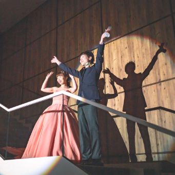 ご披露宴最初の入場とは場所を変えて階段でのご入場も♪
