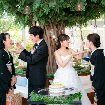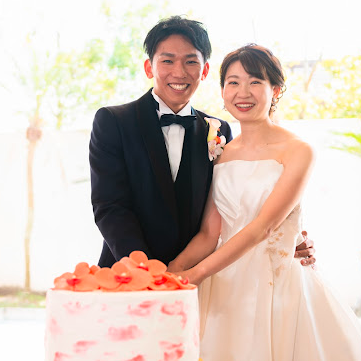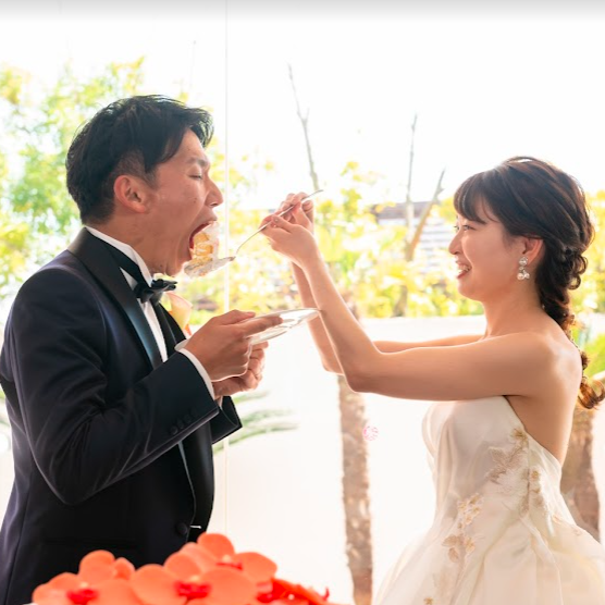 新郎新婦様がお互いにケーキを食べさせ合うシーンですが、