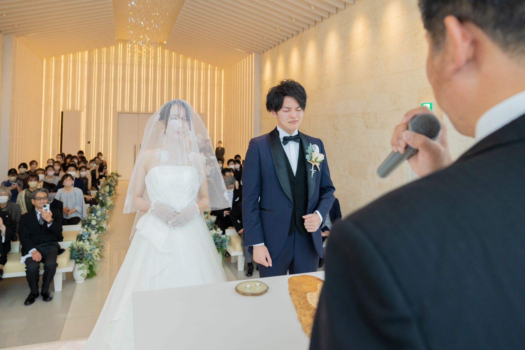 挙式で誓いの言葉を問いかけてもらったおふたり。