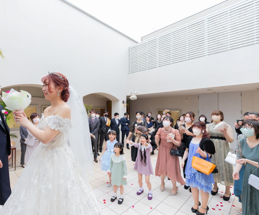 こちらは王道のアフターセレモニーでもあるブーケトス!