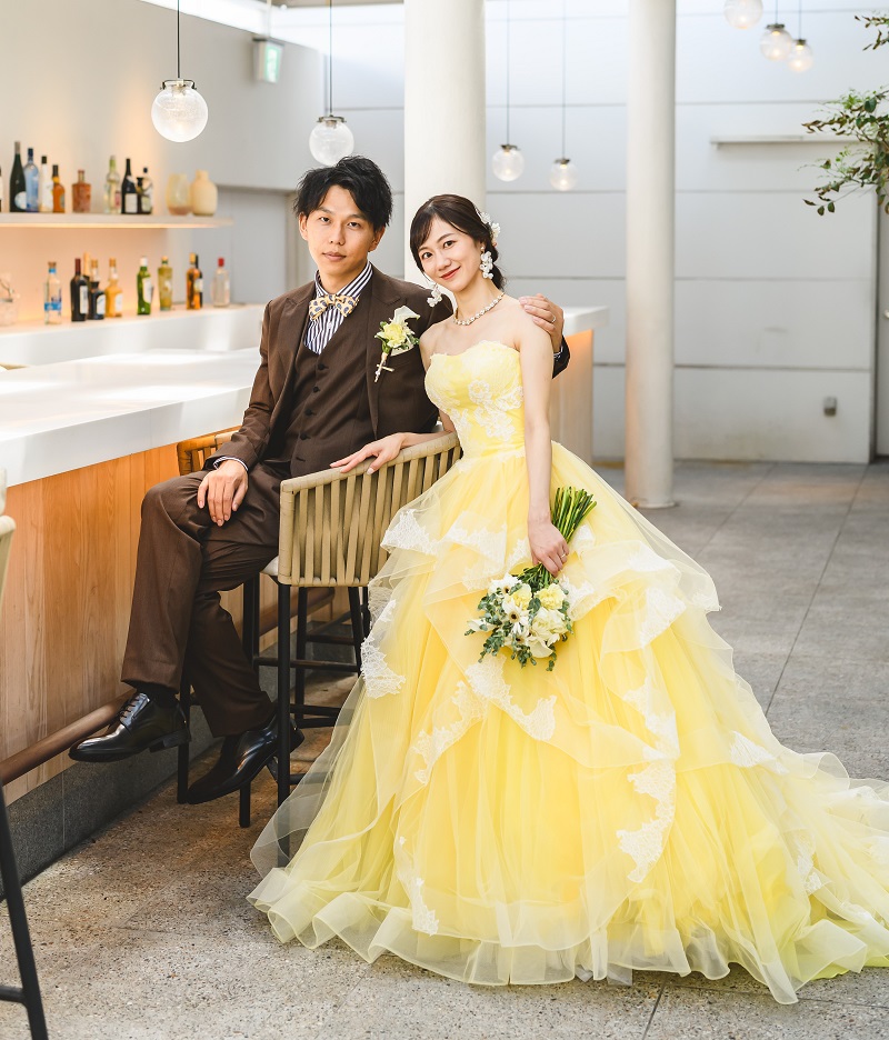 明るくハッピーカラーのイエローは新婦様の表情も明るくする