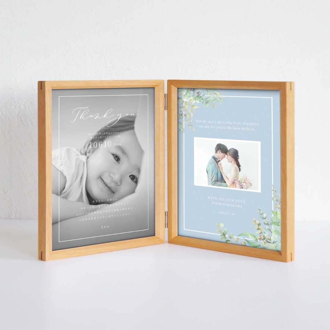 お誕生日から結婚式までの日数や、親御様への感謝のメッセージを入れられる特別仕様に。