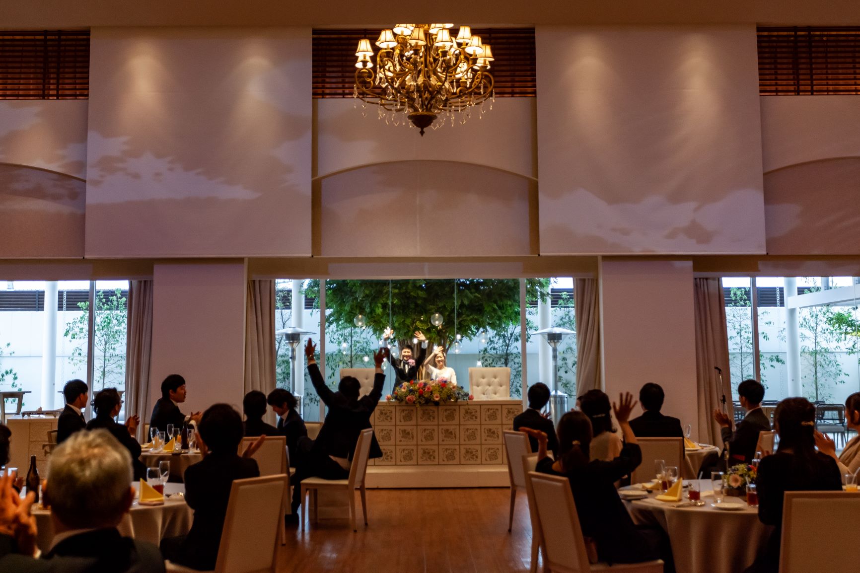 カーテンが開きおふたりのご入場の際にはゲストの方も思わず手を振ってしまうほど☆