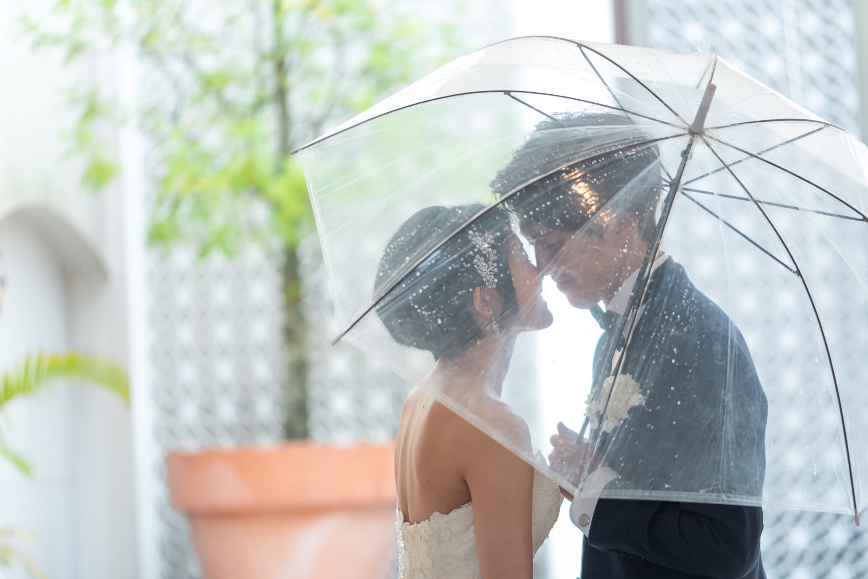 後ろの雨がおふたりの姿をロマンチックに演出しています・・・♡