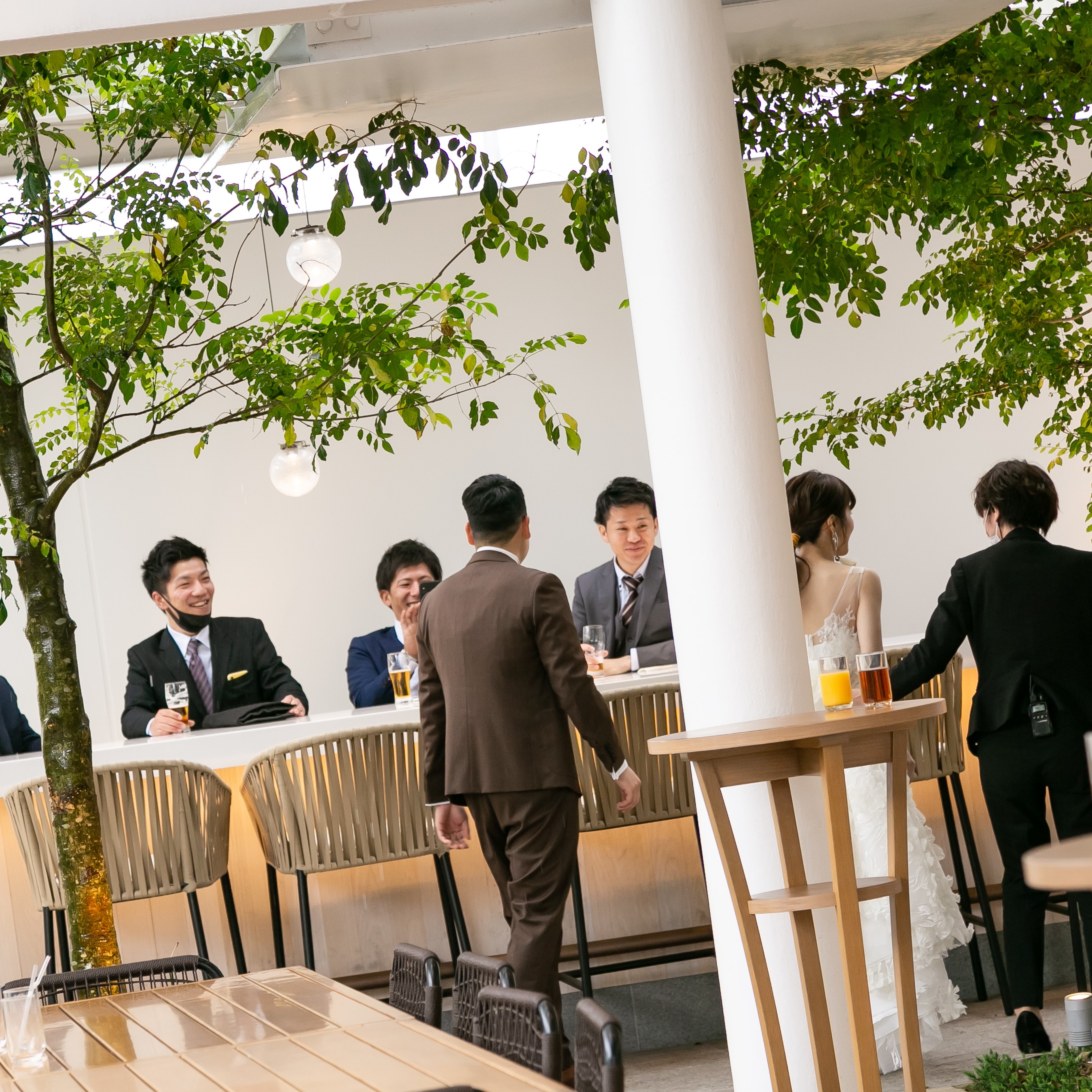 グレイスヒルのテラスにはバーカウンターがあり、披露宴の最中でもテラスに出て