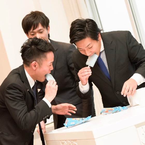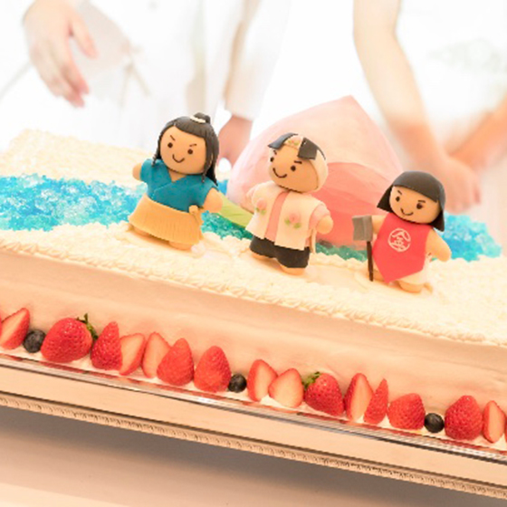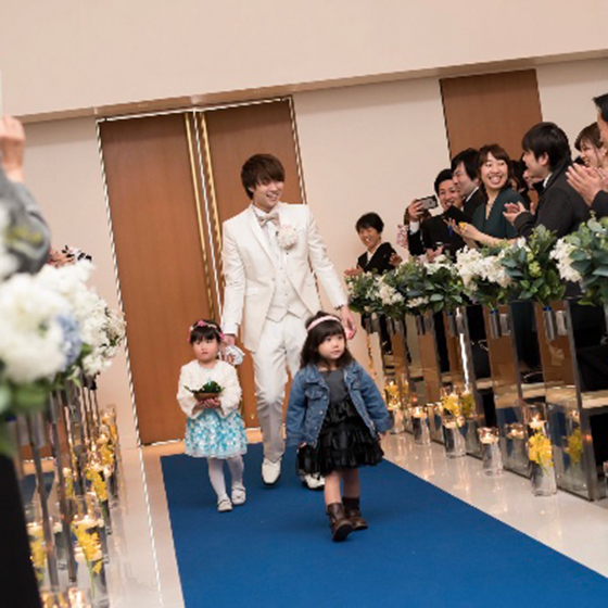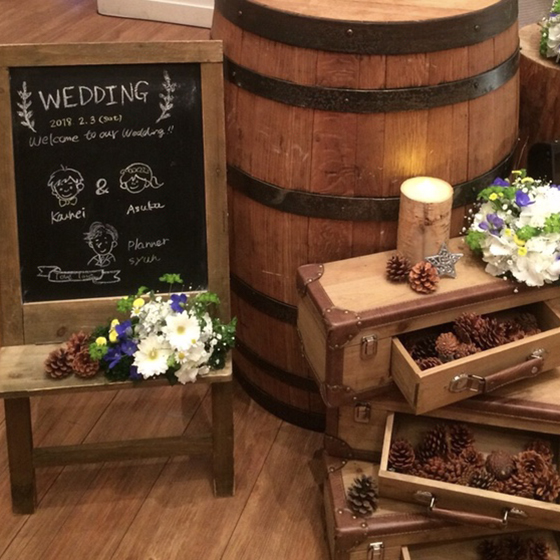 私達の結婚式は、打ち合わせの時からずっと「自分たち以上に来てくれたゲストの方々が楽しめる結婚式にしたい」「日頃の感謝の気持ちを伝えたい」「誰ともカブらない結婚式にしたい」というテーマで考えてきたので、挙式では両親族の子2人にリングガールをして頂いたり、来て下さったその方との思い出の写真を載せた手作りの席札を置かせて頂きました。また披露宴では、友人代表スピーチにくじ引きで選ばれた方にインタビュー形式でお話しして頂いたり、くじ引きで選ばれた方数名に団体戦のゲームを行ってもらったりし、出来るだけゲストのみなさんが参加出来る結婚式にさせて頂きました。そして、当日は2月3日の節分にちなんで、フラワーシャワーを大豆に変えて豆シャワーにしたり、中座後に2人で鬼の仮面をつけ豆を撒きながらの再入場、鬼の格好をプランナーさんにして頂きウエディングケーキを持ってきて頂くなど沢山のワガママを聞いて頂きました(笑)