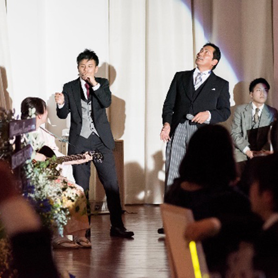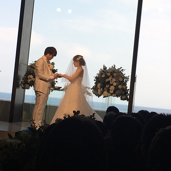 初めは2人とも緊張してとても不安でしたが、式が始まればもう楽しくて笑いっぱなしで、あっという間に時間が過ぎてあっという間の結婚式でした。両家からのまさかのサプライズでは、お互いの両親が私たちに向け歌を歌い、姉夫婦が演奏をするという内容だったのですが本当にびっくりして涙無しでは見られなかったです。とても感動して、改めてお互いに家族の絆を感じ、これからも大切にしていこうと思いました。また日頃からお世話になっているゲストの方々にも感謝の気持ちを伝えることができ、ゲストの方々も帰られる時や、終わったあとなどに「2人らしい結婚式だった」「初めて楽しい結婚式に出た」という言葉をたくさん頂いて、私たちが目標にしていた結婚式を挙げることが出来たのだととても嬉しく思いました。素敵な結婚式を挙げさせて頂いて、担当プランナーさんを始め、グレイスヒルのスタッフの皆さまには感謝しています。グレイスヒルで結婚式を挙げることが出来て本当に良かったです!