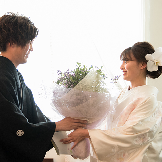挙式は親族のみで行ったためゲストの方にお見せすることができないのを当日まで残念に思っていましたが、挙式後、少しの時間ではありましたが皆さんとお会いする時間を作って頂けて、打ち合わせで何度か口にしていた「できれば白無垢を着たままゲストの方にも会いたい」という言葉を覚えてくれていたプランナーの田中さんの優しさと心遣いが本当に嬉しかったです。