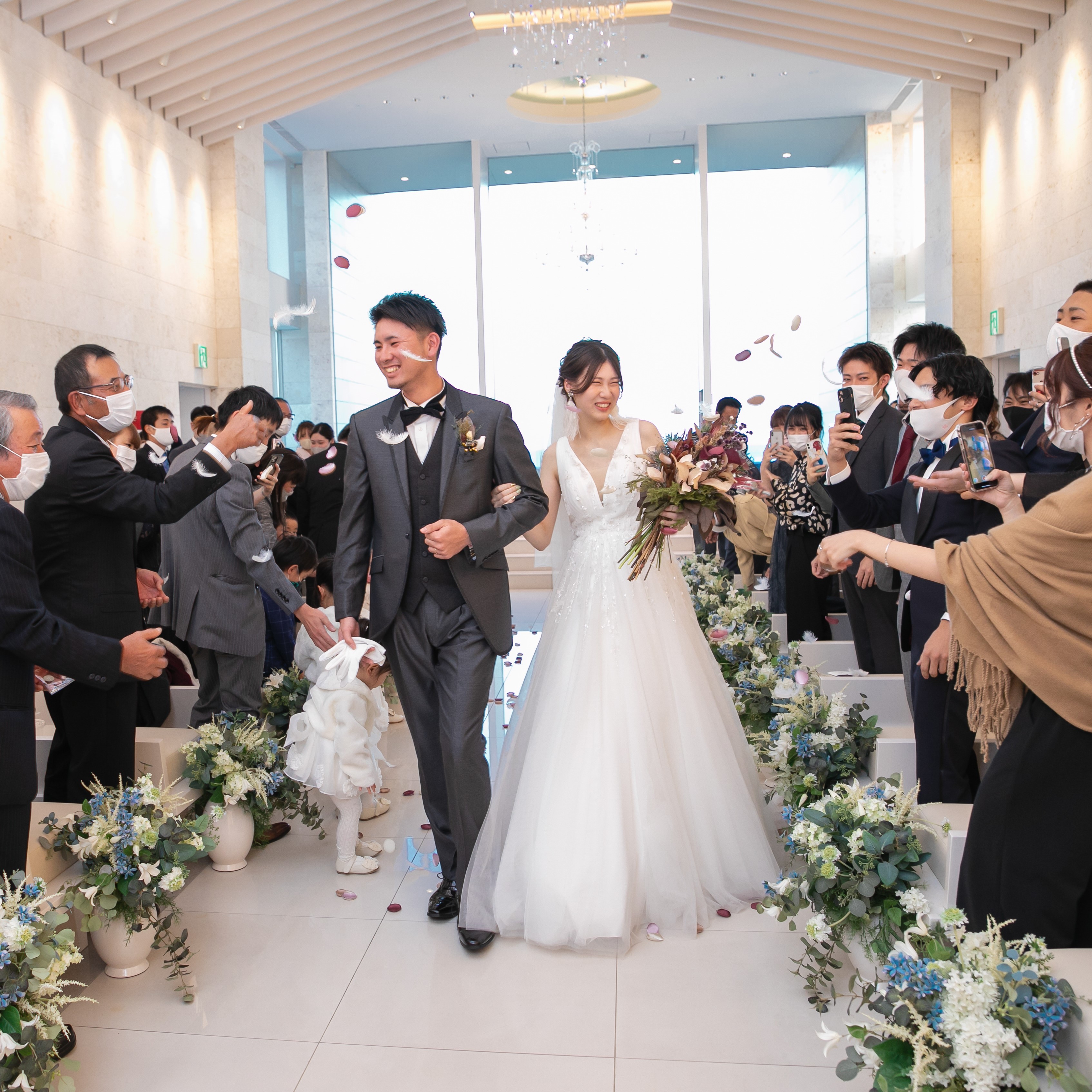 挙式はゲストの皆さんにお腹の大きさがバレないようなドレスを選び、