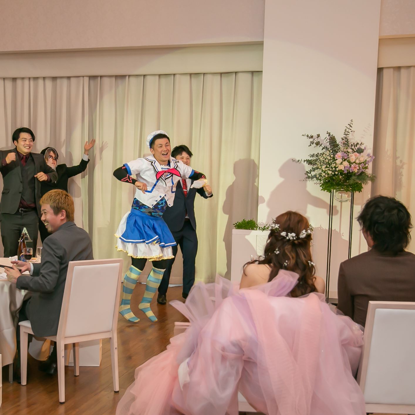 カラードレスの色当て、新婦のブーケトスだけでなく、男性参加のゴムパッチン、二次会も披露宴会場を使って行うなど私たちのやりたいことを全部詰め込みました!