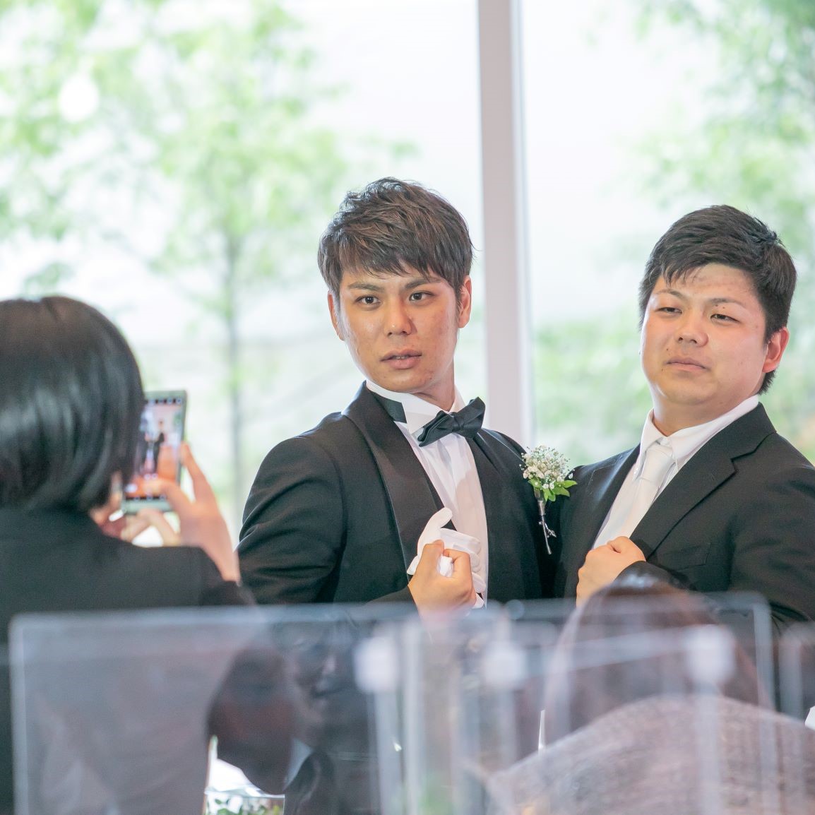 コロナ禍の結婚式でとても心配していましたが、受付が混雑しないように芳名カードを提案してくださったり、各テーブルにパーテーションや消毒の設置、室内の換気などを徹底してくださり、それに加えて自分たちで、マスクケースの準備や、ゲストの移動の分散をお願いするなどの対策ができました。ゲストのみなさんに安心して結婚式に参加してほしくて悩むわたしたちに、山下さんも親身になって相談に乗ってくださいました。