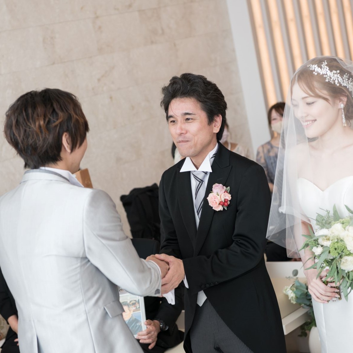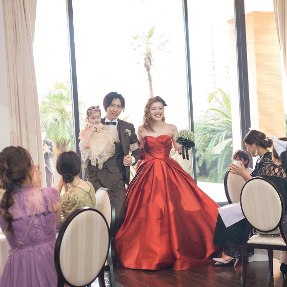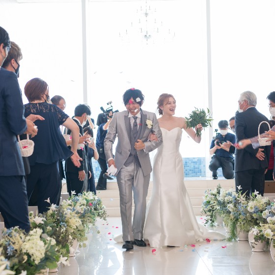 いざチャペルの扉が開き、親族や友人のみんなの顔を見た瞬間、やっと実感がわいてきた感じがしました。