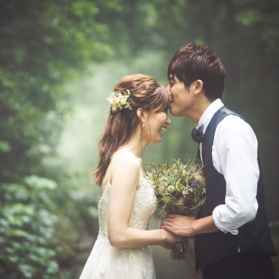 新郎の出身が屋久島だったので綺麗な海と森で前撮りしたいと思い、