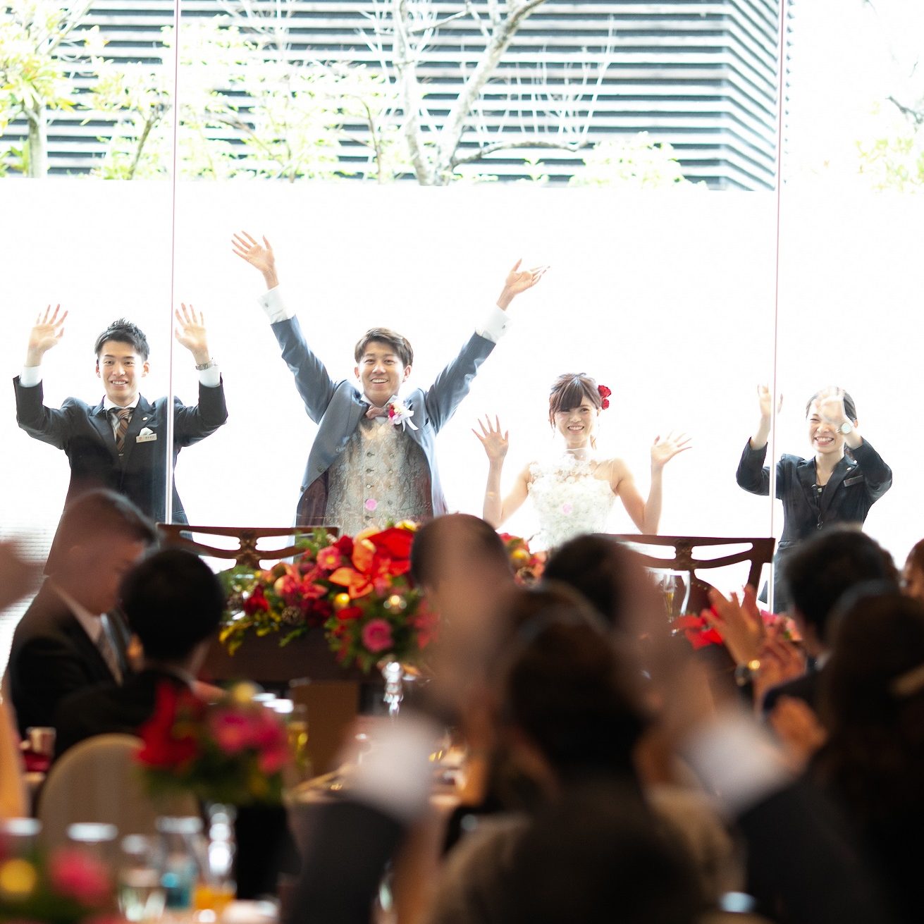 新郎と友人のももクロダンスに会場中が大爆笑したり、新郎が新婦に内緒で階段でのサプライズブーケを準備してくれていたこと、新郎の友人がブライズルームにサプライズをしてくれていたことなど、予想もしていなかったことがたくさんあり、私達も最後までワクワクして楽しむことができました。