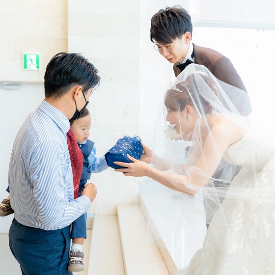 式当日は、ゲストの方に楽しんでもらえるか、少し不安な部分もありましたが、私たちがこだわったポイントに対して、想像以上に驚いていたり、楽しんでもらえました。それは、私たちがこだわった各ポイントに対する思いを、式場のスタッフの方々がきちんと汲み取って、行動してくださったおかげだと思います。披露宴中には、司会の方がサプライズ感や、余興を盛り上げるための声掛け、新郎新婦と写真を撮るタイミング、話ができるタイミングをゲストの皆さんにきちんと伝えてくださいました。また、キャプテンがとても信頼感のある方で、移動・動作に対する戸惑いもなく、式を楽しむことだけに集中することができました。