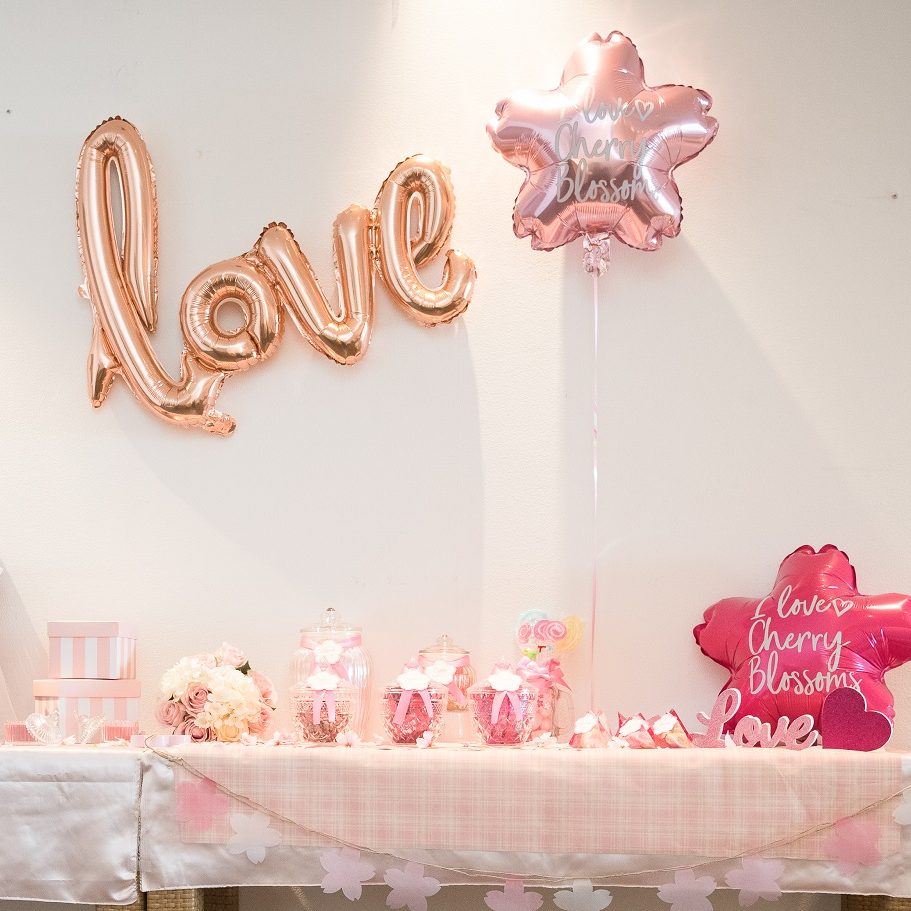 『桜WEDDING』。ウェルカムスペースの装飾もウェルカムボードも