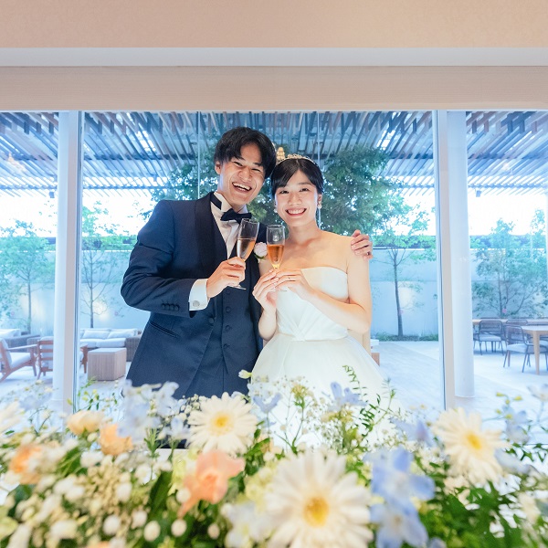 披露宴の会場も室内だけではなくテラス席があって、そこでご飯やお酒を食べたり飲めたりすることができるのもまた選んだポイントになります。