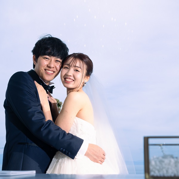 式場見学で会場の雰囲気やグレイスヒルならではの演出にとても魅力を感じ、「私たちの理想の結婚式を挙げられるのはここだ!」と強く思いました。また披露宴会場にテラス席があったことや天井が高く開放感があったこと、海が近いこと、白を基調とした会場の雰囲気など多くのことに惹かれました。そして、日程に関しても運良く秋口の大安の日が空いており、「ここで挙げよう!」と気持ちよく選ばせていただきました。またスタッフの皆さんがとてもあたたかく、笑顔で迎えてくださり毎回の打ち合わせがとても楽しみでした。