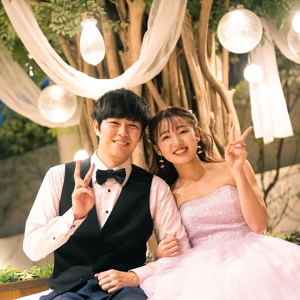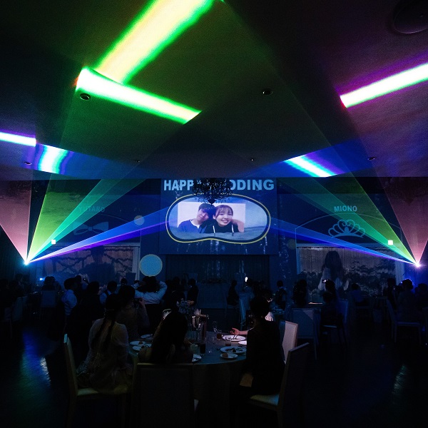 ゲストの方に「楽しい!」と思ってもらえるような結婚式にしたかったため、ボルケーノやレーザー、プロジェクションマッピングなど盛り上がる演出を沢山取り入れました。ちょっとしたライブのような演出は私たち自身もとても楽しめました。結婚式後にはゲストの方から、「今までの結婚式で1番楽しかった」「私もここで結婚式をしたい」という声も頂き、とても嬉しく感じました。