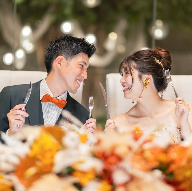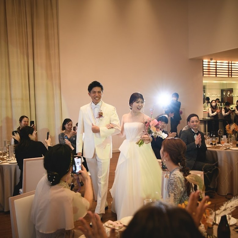 以前よりお料理が美味しいと言うことを聞いており、実際に式場見学に行った際、食べてみてとても美味しく感動したのが決め手でした。またチャペルもガラス張りでとても豪華な雰囲気でした。披露宴会場も私好みのテーブルコーディネートがしやすい色味で、テラスにあるシンボルツリーもとても魅力的でした。そしてスタッフの方達の対応も良く、子連れでの打ち合わせもリモートや個室での打ち合わせなど臨機応変な対応をしてくださり、周りに気を使う事なく打ち合わせに専念する事ができました。