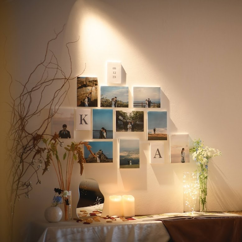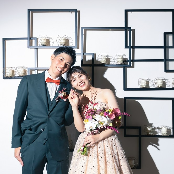 アイテムでこだわったポイントは、なるべく自分好みにしたく、シンプルお洒落にDIYの物を多く取り入れ、お花を沢山使い華やかさを出しました。お花の色味はカラードレスとも合うように、装花担当の方と打ち合わせ時に相談しながら、当日はとても満足のいく装花に仕上がっていました。