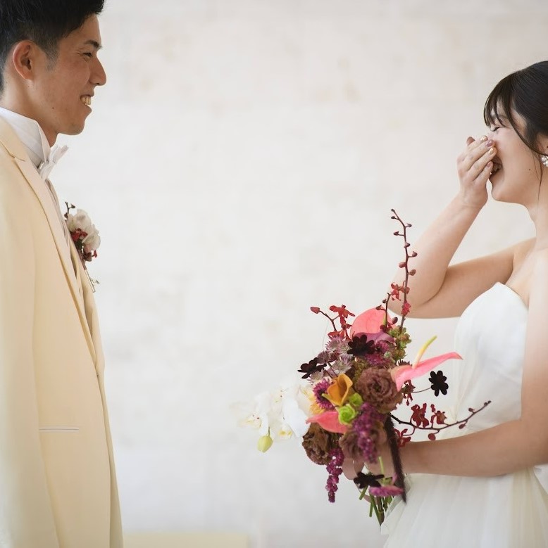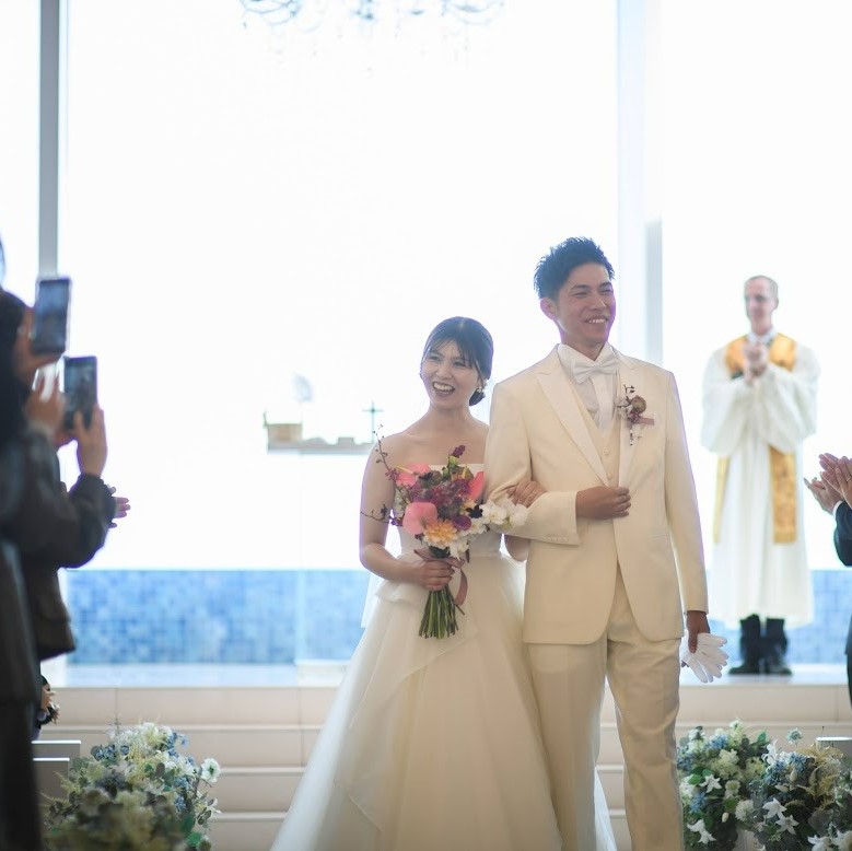当日の準備の時間は、メイク担当の方と楽しくお話をして少しずつ緊張していったのを覚えています。挙式が始まると、あっという間に時間が過ぎていき、緊張する間もないくらいでした。式中は久々に会う友人や恩師、親戚など皆さんの顔をなるべく見れるように意識して、幸せな時間を満喫することができました。