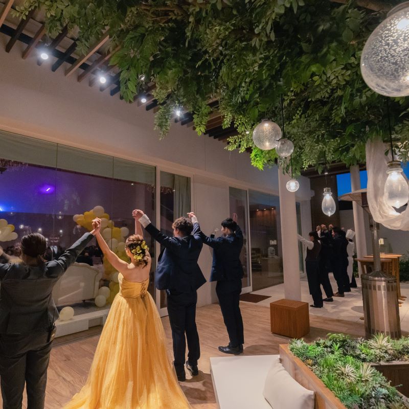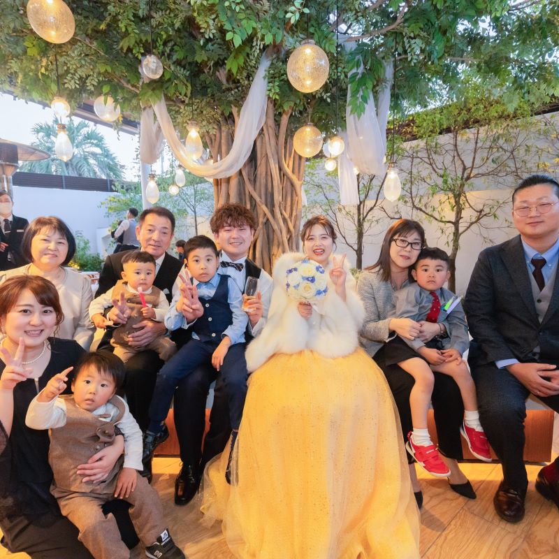 私たちが目標にしていた「みんなが楽しかった」と思ってもらえるような結婚式にしたいという願いが叶い、参列者様からたくさんの「楽しかったよ、素敵な式だったよ」とのお声を頂くことが出来て、私たち自身もとても嬉しい気持ちになりました。実際に、自分たちも終始涙あり笑いありの楽しく挙式披露宴を行うことが出来ました。このように行うことが出来たのも、担当者様やスタッフの方の全ての方々に協力して頂いたからこそだと思います。本当にありがとうございました。