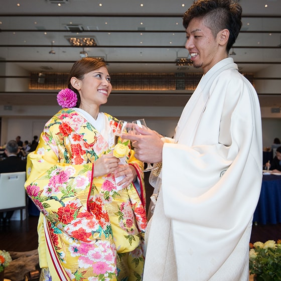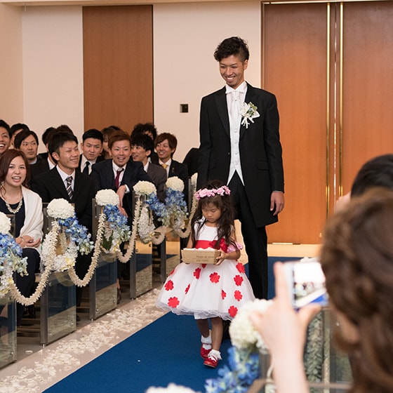 当日は始まる前は緊張であまり何も考えられなかったのですが、たくさんのスタッフの方が周りで笑顔で楽しんで下さいとみなさん声をかけてくださったので、式が始まってからは終わりの時間までが本当に早く感じてしまう程楽しむ事ができました。