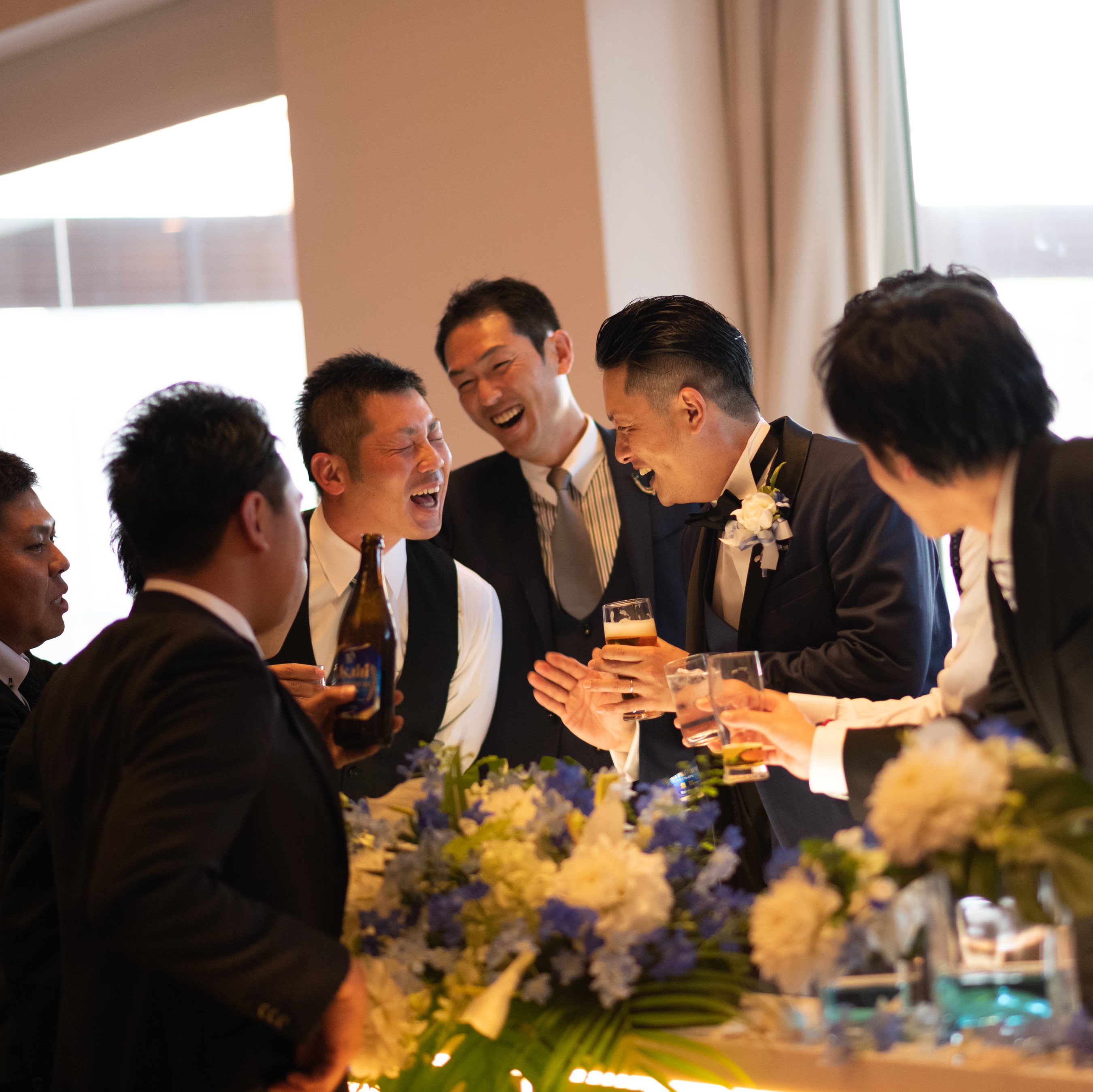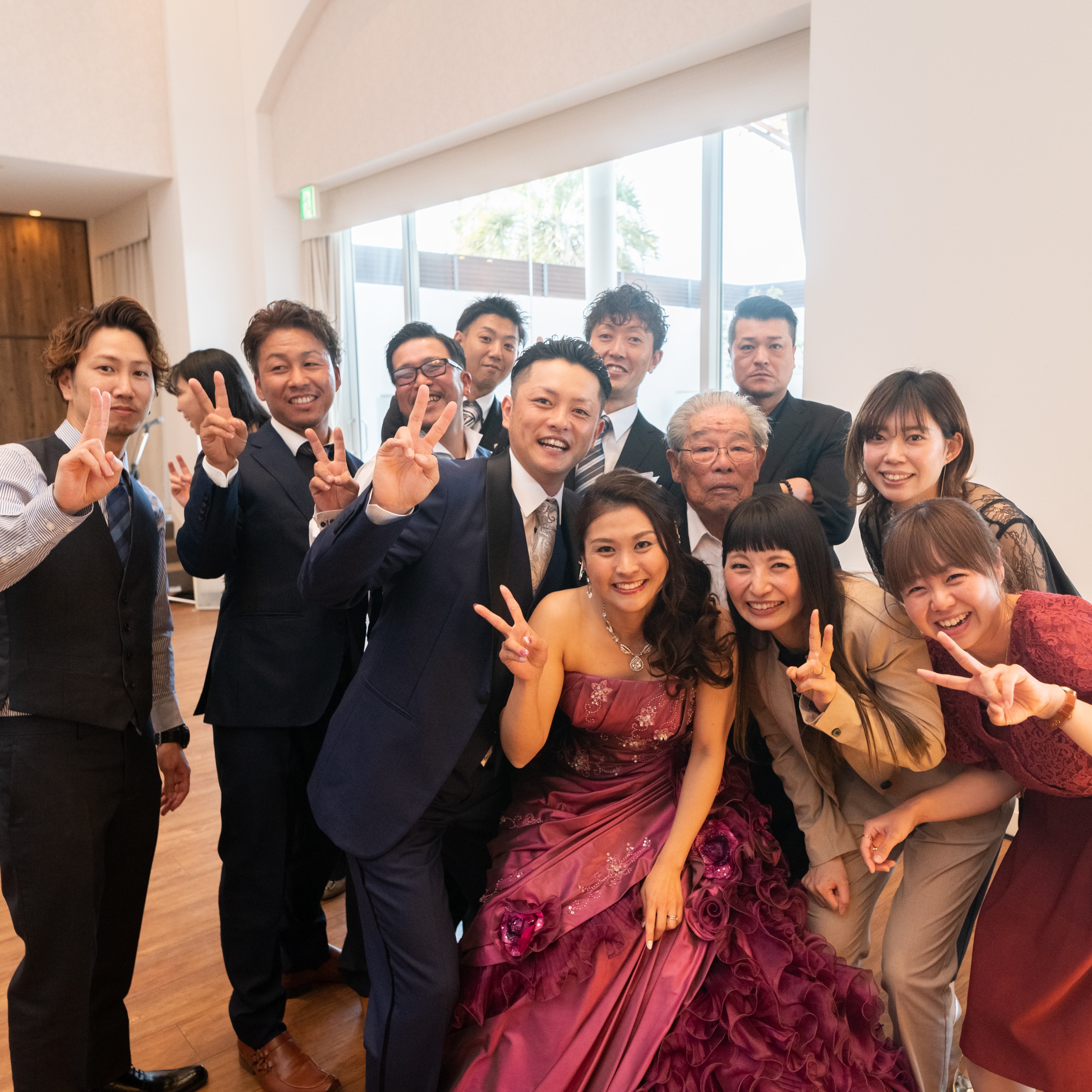 新郎新婦にサプライズで黒塗りの新郎姉が松崎茂になって出てきたのには涙が出るほど笑いました。思い描いた以上にアットホームで笑顔が沢山の式になりました。