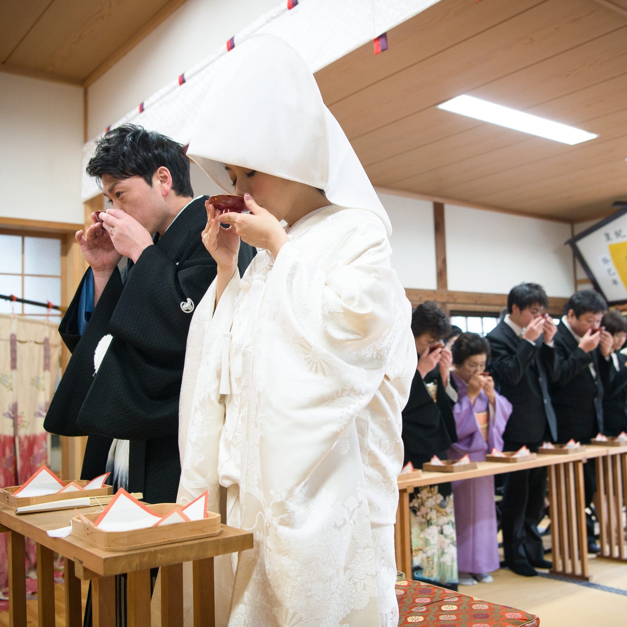 まず一つ目は、柏原神社で「神前式」を挙げたのですが、披露宴が始まるまでの時間に、白無垢でゲストの皆さまをお出迎えすることでした。神前式だと、友人や会社関係の人に、披露宴まで会えないことがほとんどですが、プランナーさんに相談して、少しの時間ではありましたが、白無垢姿で皆さまをお出迎えすることが出来ました。