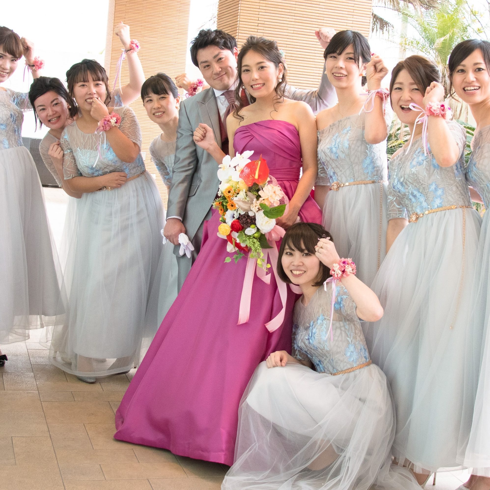 もう一つのこだわりポイントは、新婦友人に「ブライズメイド」をお願いしたところです!友人が全員衣装を合わせてくれてたので、リースブレスレットをこちらから用意してプレゼンとして当日つけてもらいました。神前式だったので、披露宴の入場シーンで参加してもらったのですが、非常に盛り上がりブライズメイドのみんなと楽しい時間を共有することが出来ました!