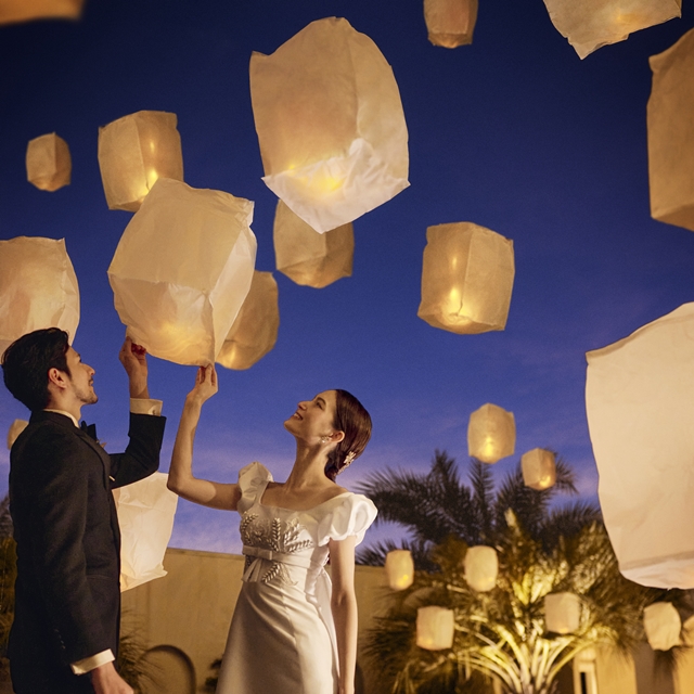 バンケットとプライベートガーデンでは、おふたりのテーマに合わせた多彩な演出をお愉しみいただけます。バーカウンターでオリジナルドリンクをサーブしたり、ガーデンでデザートビュッフェやシェフによる料理パフォーマンスを盛り込んだりと、オリジナリティあふれる演出もアレンジ自在。プールサイドをキャンドルの灯りで彩る、幻想的なナイトパーティーもおすすめです。