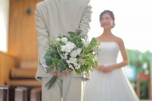 定番ブーケも新郎様が持つとまた違った雰囲気に・・
