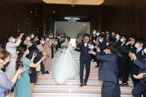 スターシャワーでお祝いいただきおふたりも笑顔が溢れます